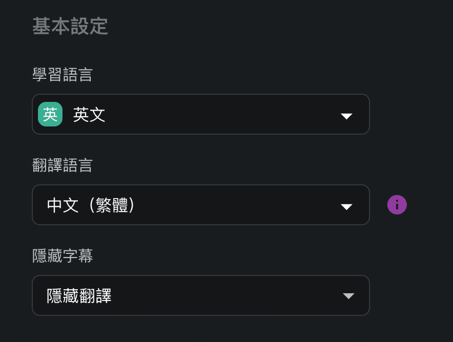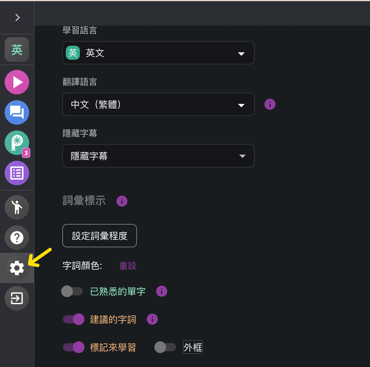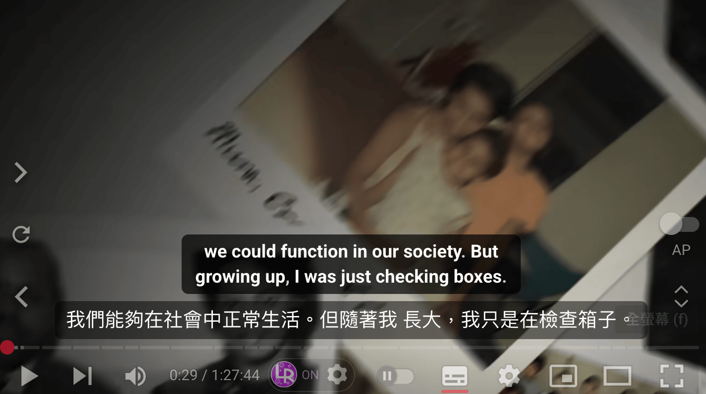 多數時候,單純想訓練聽力,想聽原文輸入,Fine,你可以透過LR齒輪⚙️隱藏翻譯。