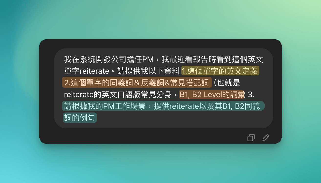 👆以上這一步,是我在教學工作中會要學生去做到的「化被動為主動」的練習。多做到這個步驟,你的英文絕對會有感進步。
